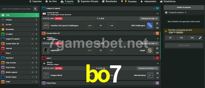 A aposta bo7 oferece aos jogadores a experiência mais conveniente de apostas em eSports!